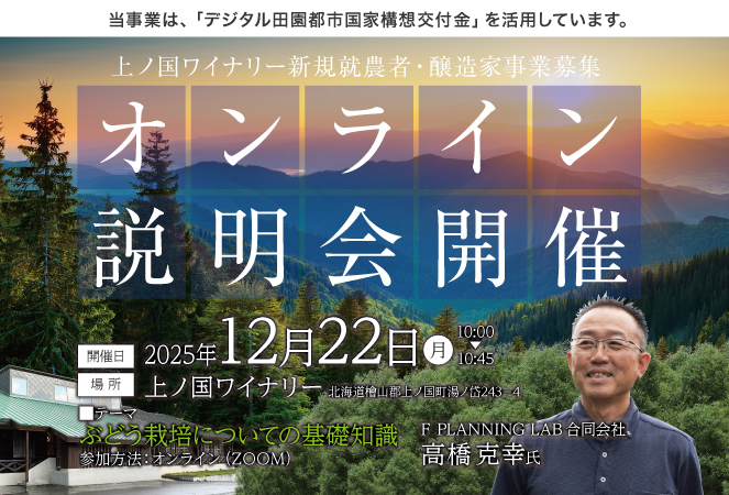 上ノ国ワイナリーでは、新規就農者、醸造家を募集しております。 募集に伴い、興…