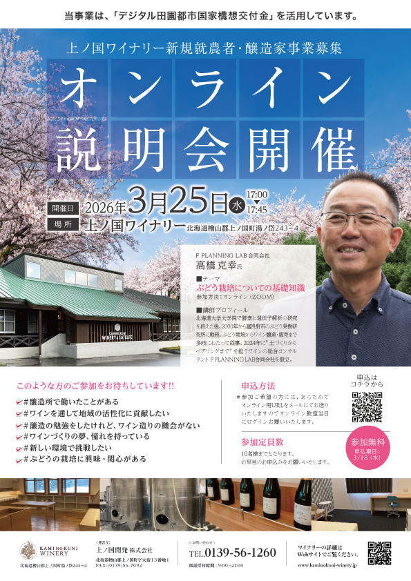 就農者・醸造家募集に伴いオンライン説明会を3月25日(水)に開催いたします。